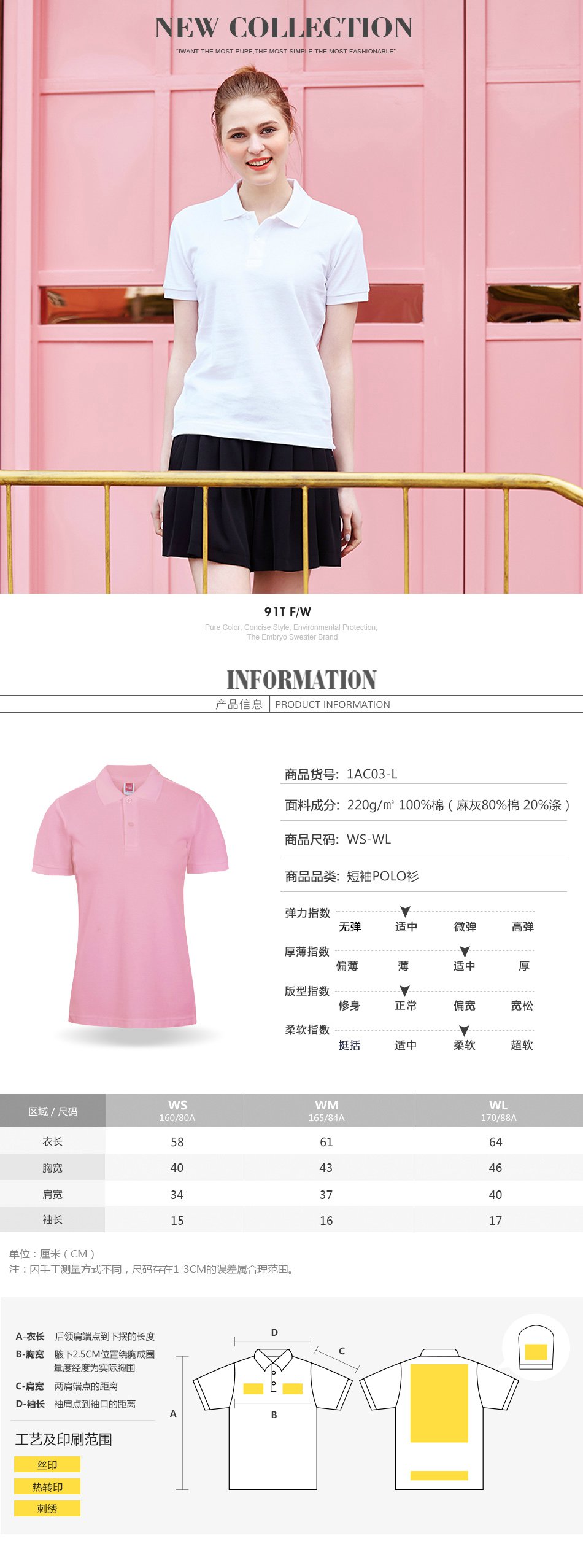 商品尺碼: S—160/80A M—165/84A L—170/88A